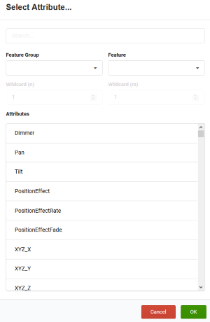 - To open the Select Attribute window, click into the attribute input field. The Select Attribute window opens. Select the Attribute from the dropdown menu or search for it in the search field.