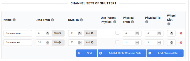 Channel sets can be used for defining individual functions, for example minimum and maximum strobe speed or wheel slots.