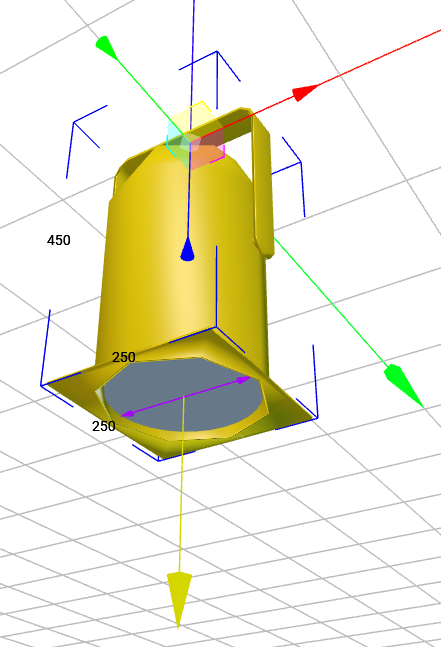 - To move a geometry on a specific plane, drag it using one of the colored squares.