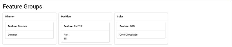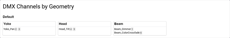 Here all DMX channels are grouped by the geometry they are assigned to.
