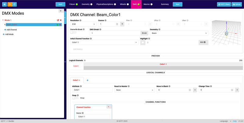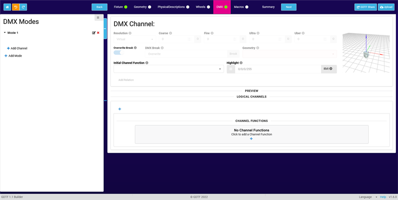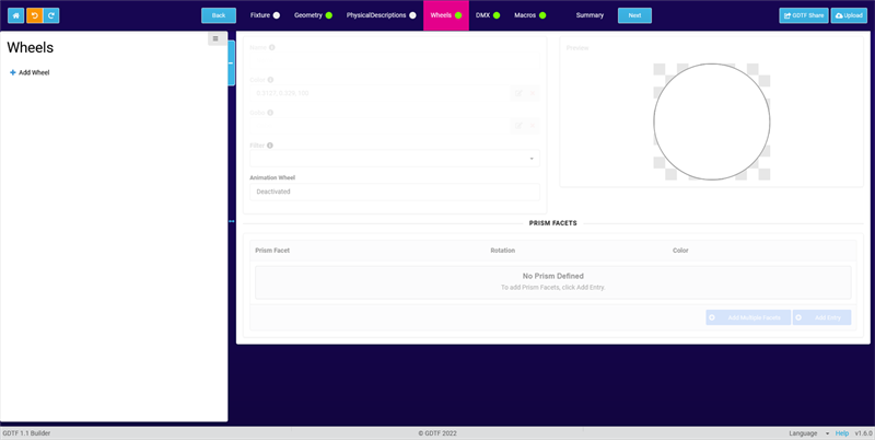 Now that the wheel itself exists, we need to describe how to control it. Go to the DMX page as a starting point.