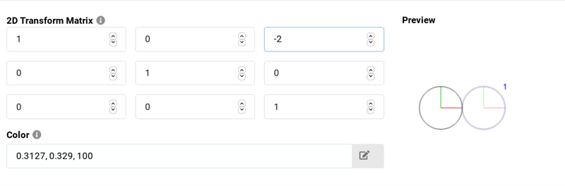 Now we define one facet to the left, touching the first beam. As the translation is to the left (negative) and it it 2x the radius of the unaltered beam, we enter -2 into the Horizontal translation field: