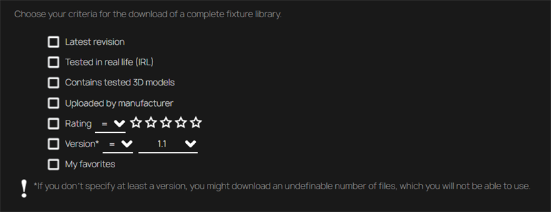 The Download files page is used to download a zip file with multiple GDTF files inside.